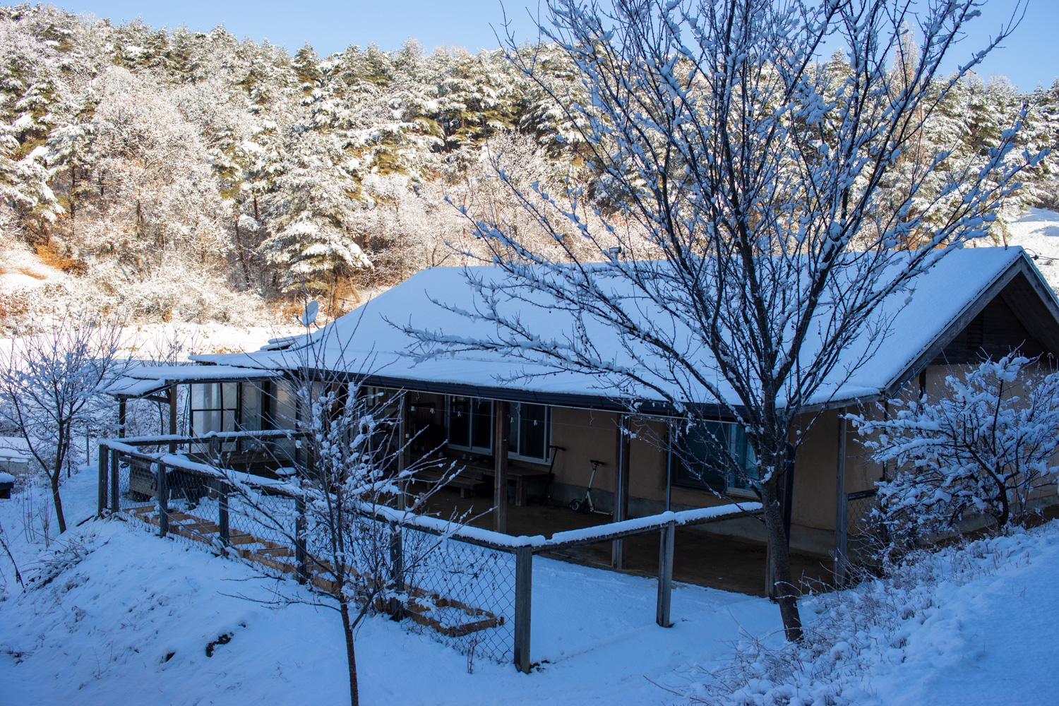 저희 집입니다. 아침이라 해가 들지는 않았네요. 눈이 많이 온 탓에 정말 아무도 오지 않네요.