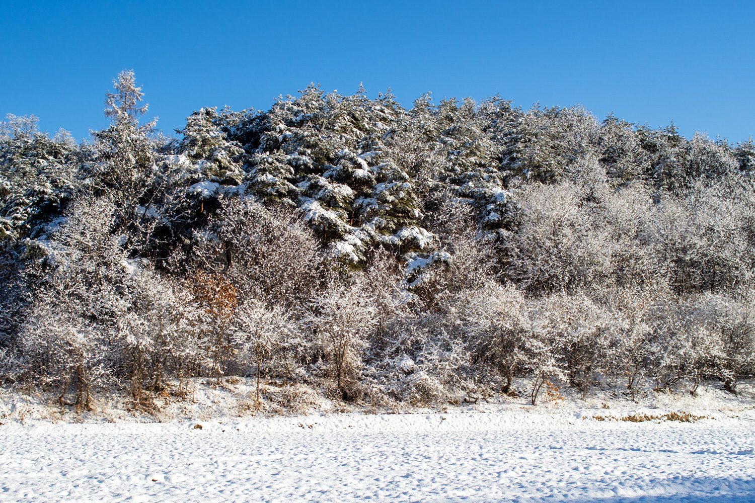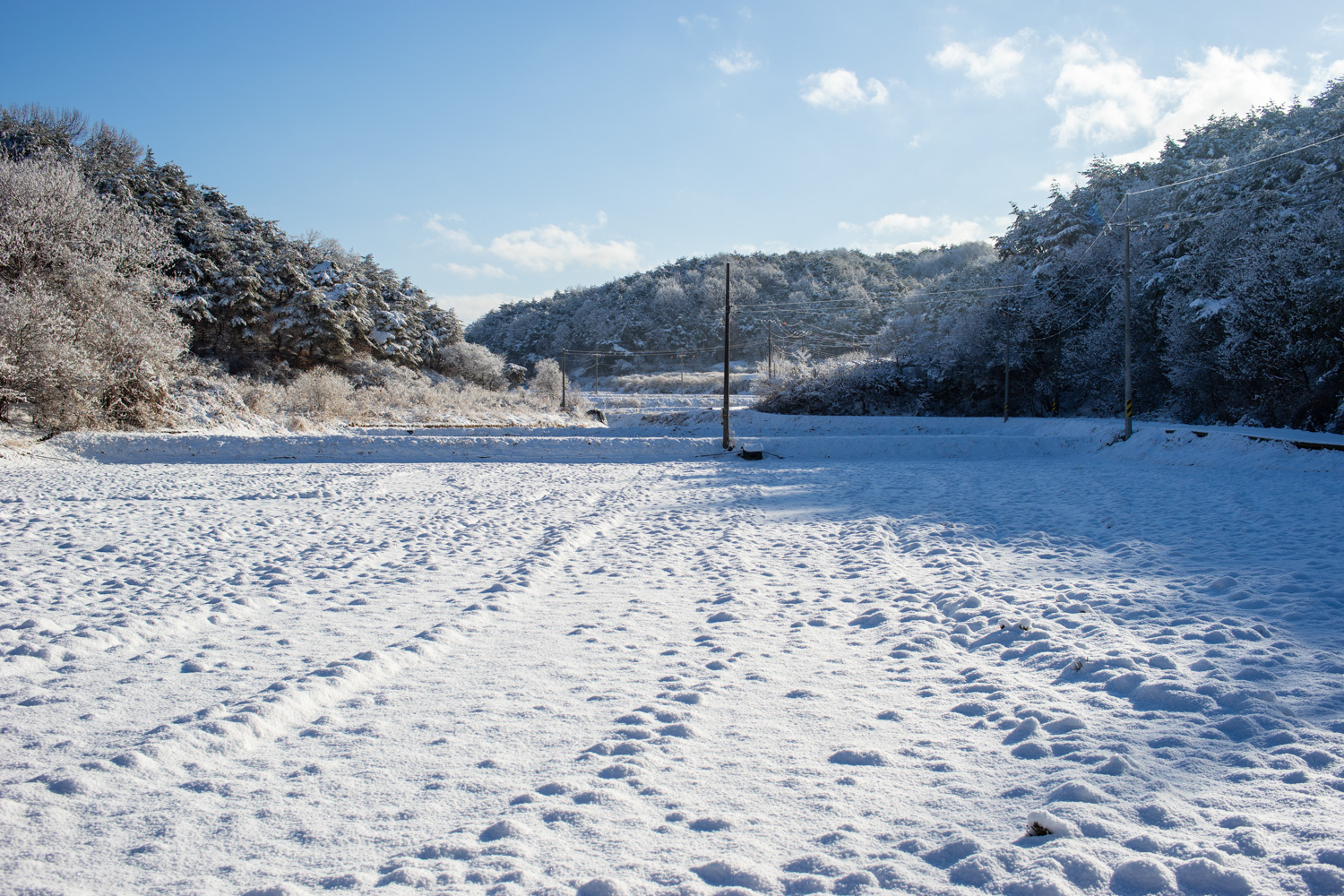 집 뒤에 있는 논 뒷쪽 숲입니다. 앞 쪽엔 활엽수가, 뒷쪽엔 소나무숲이 있습니다. 가을에도 이쁜데, 눈이 왔을 때도 이쁘네요.
