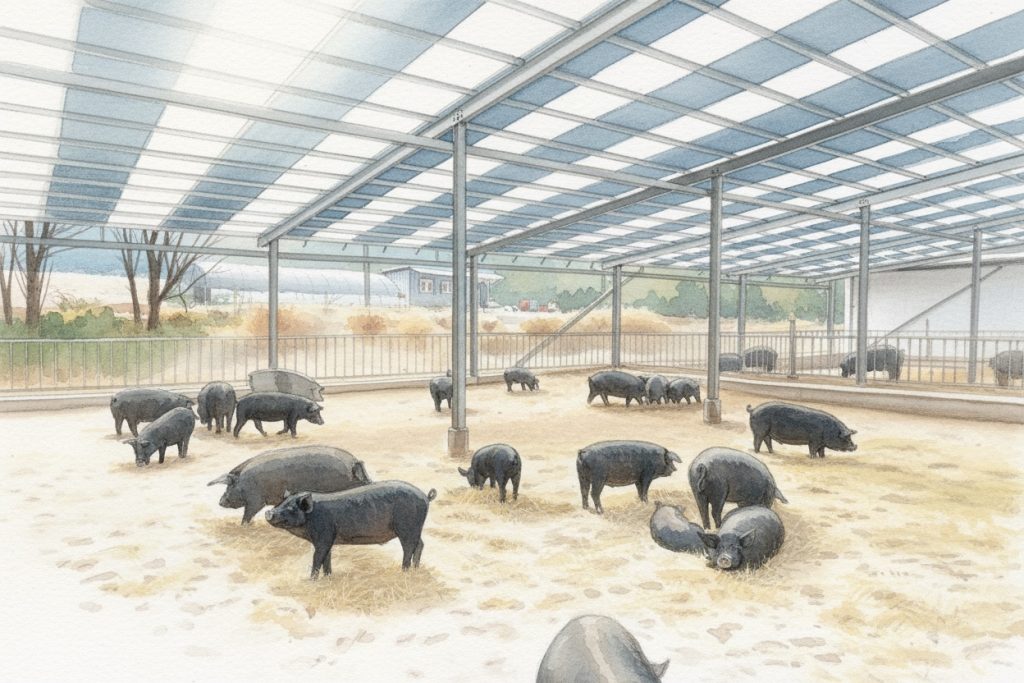 2017년부터 본격적으로 고민하고 준비했고, 2018년도에 축사 준공, 2019년도에 축산업 허가를 받았다. 그 과정에 농장을 운영하던 선배들의 도움을 많이 받았다. 약 240평의 축사에 최대 150마리의 돼지들이 생활한다. 어미돼지들은도 케이지가 아닌 4평정도 되는 널찍한 돈방에서 새끼들을 돌본다. 햇볕이 내리쬐고, 바람은 숭숭 통한다. 바닥은 깨끗한 톱밥이 깔려있어 안락함도 주지만, 맛있는 간식이기도 하다. 돼지 똥은 모아서 퇴비를 만들어 밭으로 나간다. 소위 ‘경축순환농업’이 되는 셈이다.