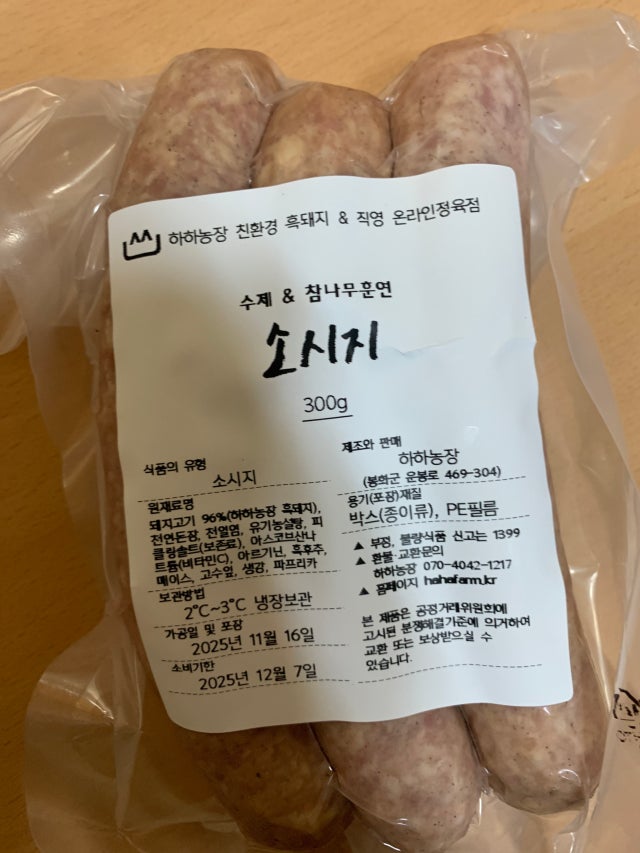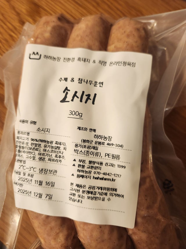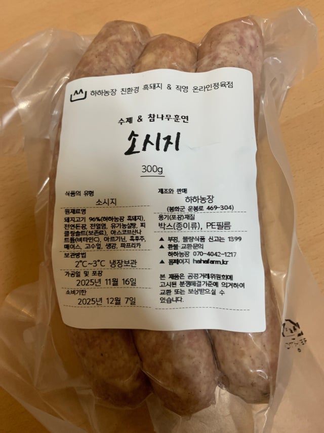 | 제품명 | 하하농장 흑돼지 수제소시지 |