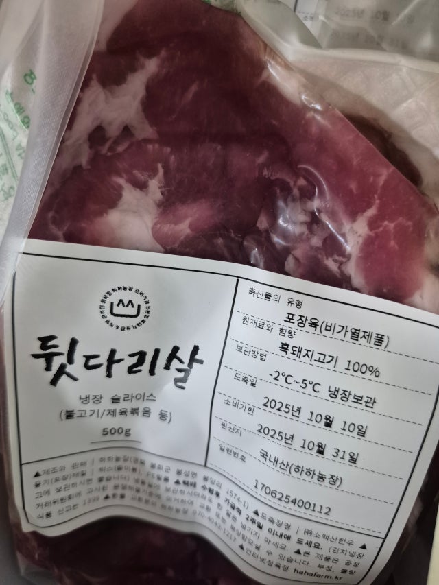 wldm**** 님의 리뷰입니다. 뒷다리살 슬라이스 500g
