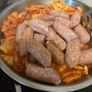 하하농장 수제소시지는 기본적으로 조리가 되어있습니다. 그냥 드셔도 되지만 더 맛있게 드시려면 프라이팬에서 약간 노릇한 정도로 익히면 됩니다. 중불 혹은 그 보다 약한 불로 느릿하게 익히면 소시지 내부까지 뜨겁게 익습니다.