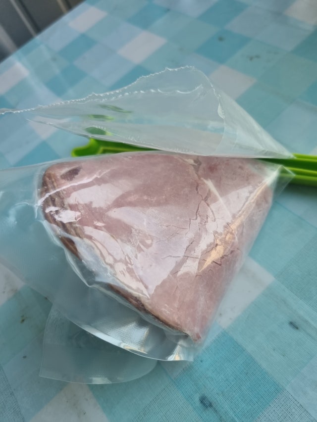 햄을 만드는 다양한 방법을 찾아보고 공부하고 연구해보았는데요. 그 방법들을 추리고 추리고 추려보니 가장 정통?적인 방법이 염지액(소금+향신료)을 만들어 고기를 열흘에서 보름간 담구어 놓고, 심부 온도(고기 속 온도)가 65도가 될 때까지 70~80도의 연기로 훈연을 하는 것입니다. 여기서 염지액에 어떤 재료를 넣느냐, 훈연은 어떤 나무로 하느냐, 몇 도의 온도로 훈연을 하느냐 등등 세부적인 부분에서 햄의 상태가 달라지더라구요.